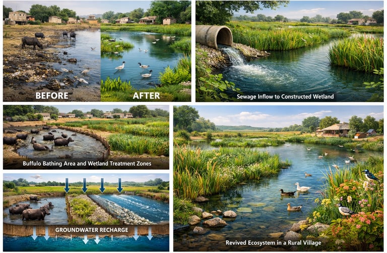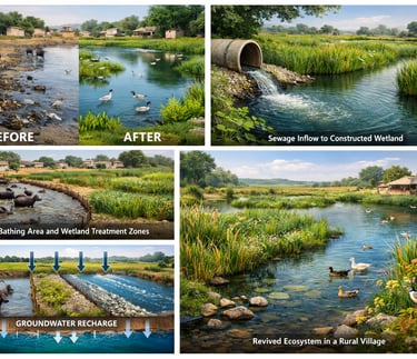 Repurposing village chappars into constructed wetlands is particularly compelling because it builds on existing infrastructure, cultural practices, and communal land arrangements. This approach avoids the long-term environmental costs of septic tanks while delivering tangible public health, ecological, and economic benefits. Cleaner drinking water, reduced disease burden, enhanced biodiversity, and improved groundwater recharge collectively strengthen rural resilience in the face of climate change and water scarcity.